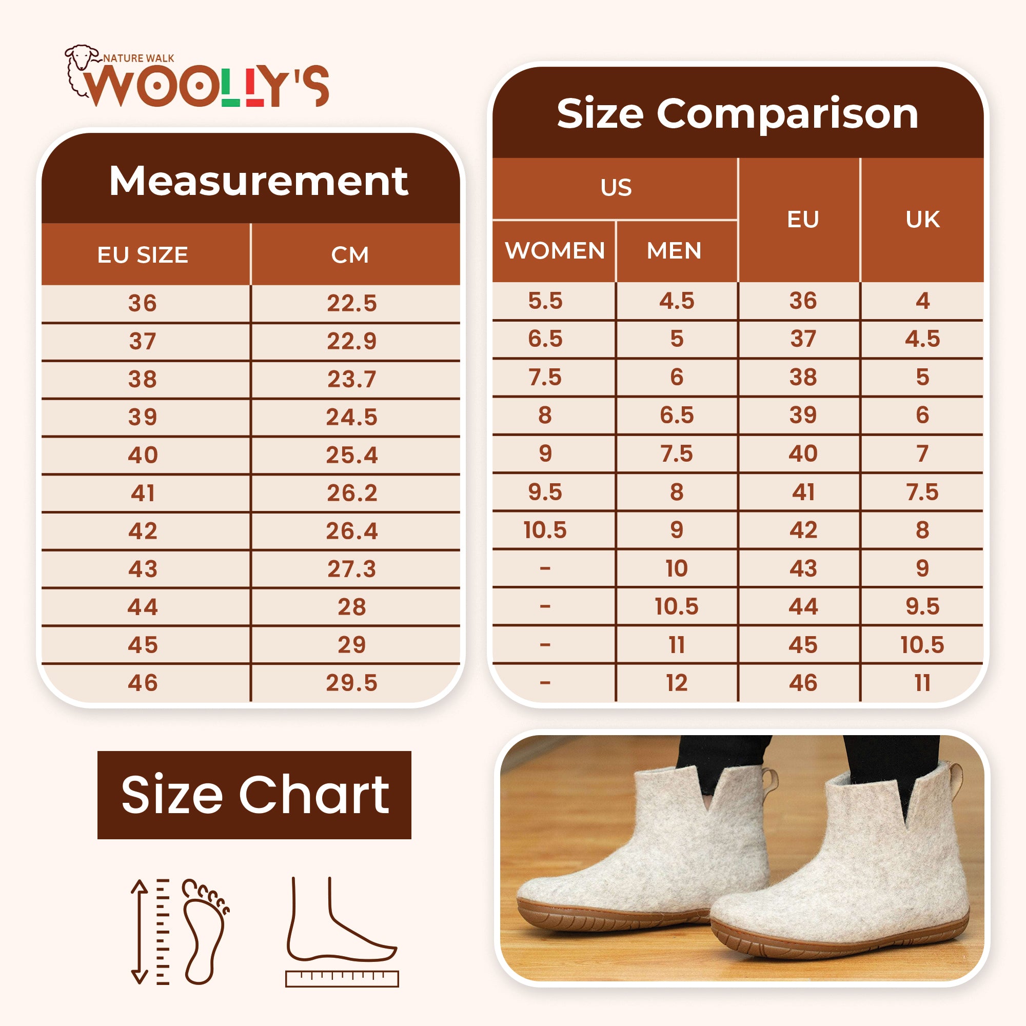 為了保持它們處於最佳狀態,請使用軟刷或濕布輕輕擦拭,避免使用粗糙材料。讓它們自然風乾,潮濕時重新塑形,然後存放在陰涼乾燥的地方。如果出現頑固污漬,請使用專為羊毛設計的溫和肥皂。享受隨著時間的推移而形成的自然光澤,因為它為這些真實的手工製品增添了特色。透過這些簡單的護理步驟,您的毛氈羊毛拖鞋將繼續提供舒適感和時尚感,這證明了我們在每一雙拖鞋上傾注的工藝和奉獻精神。