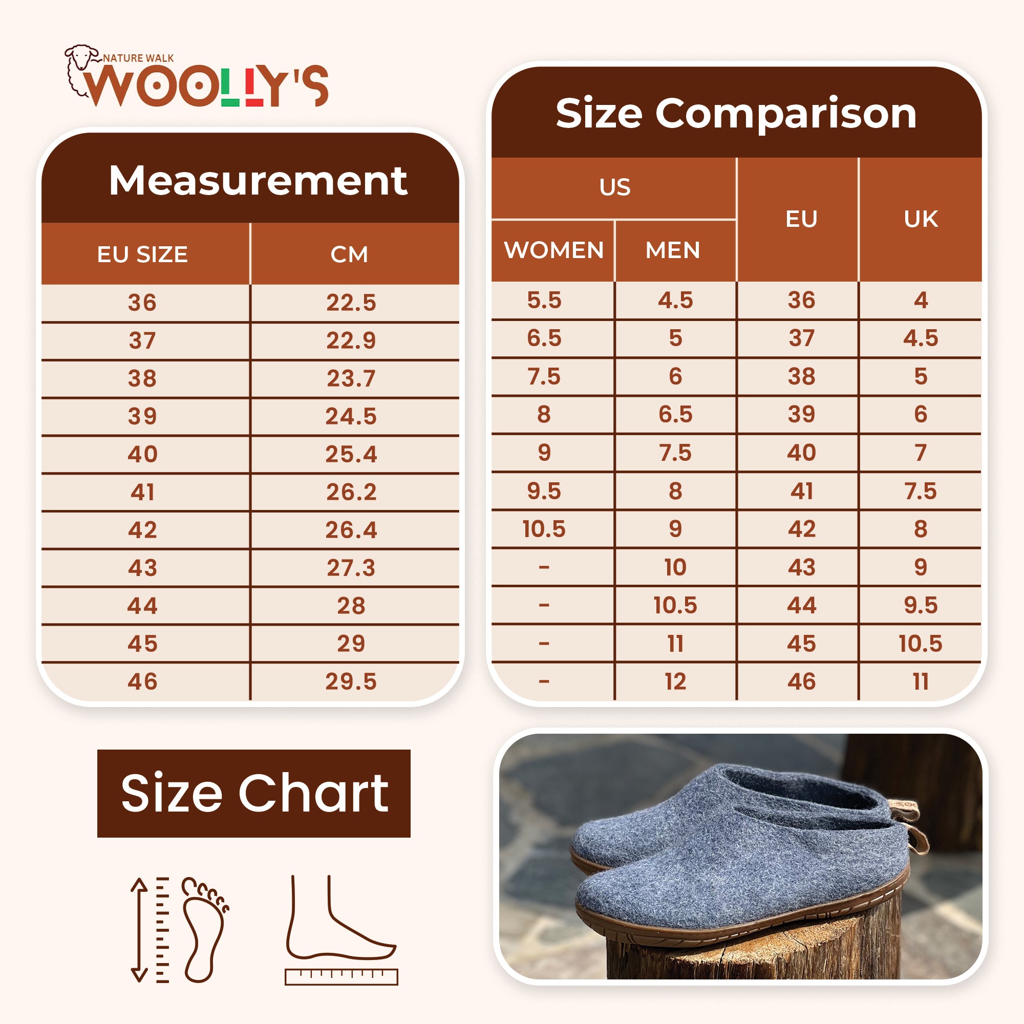 - Perfect for All Locations: Regardless of where you are from United States, United Kingdom, Canada, Australia or Europe and anywhere felt shoes designed at Woollyes are perfect for you. Locate the most appropriate felt slippers in your area of residence within the shortest duration of time.